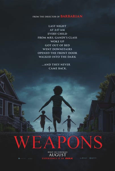 After watching hundreds of horror movies and thrillers over a lifetime, it's a rare treat to encounter a film that feels genuinely fresh and unfamiliar. It suggests originality, respect for the genre, and true talent in a space where it’s notoriously hard to avoid clichés. Weapons is such a film.